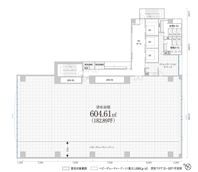 | 基準階面積 | 183坪 / 605㎡ |